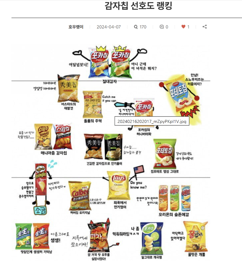 감자칩 선호도 랭킹