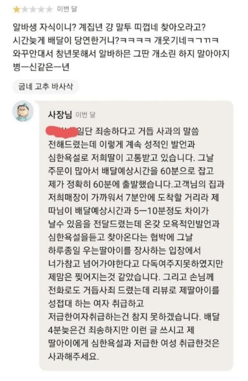 배달 4분 늦은 후기