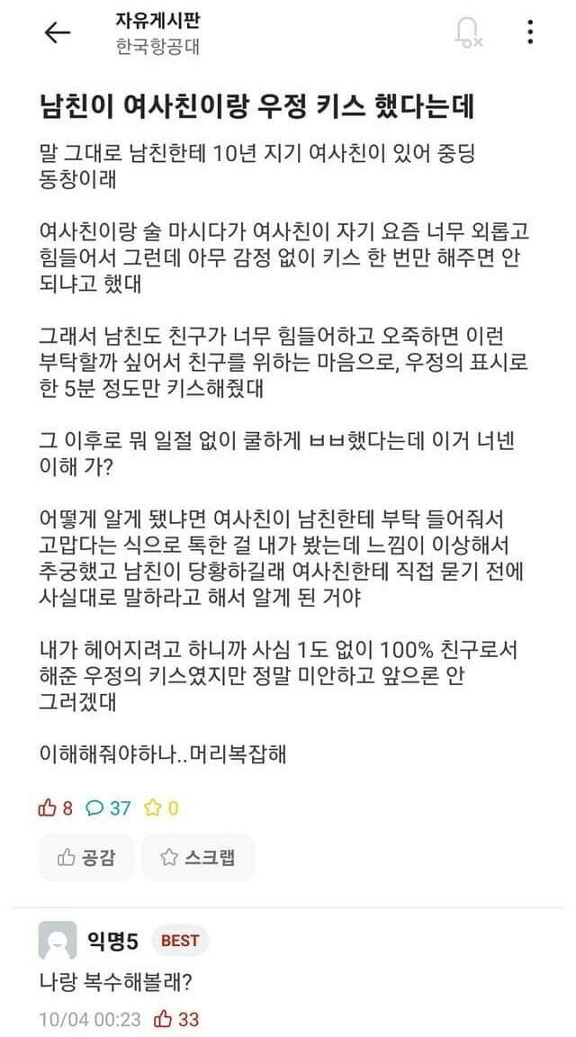 여사친이랑 우정키스한 남자친구