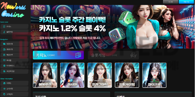 뉴월드카지노 (worldcasino777.com) 는 2025년 9월 6일 부터 사이트를 개설하자마자 운영하기 시작한 사이트로 현재까지 운영 이력, 사용자 피드백, 인증 내역이 전혀 확보되지 않은 도메인입니다. 만들어진지는 1년이 넘었지만 최근 새로운 업데이트를 통해 보여지게 되었고 아직 검증된 내용이 없어 이용하시기 위험합니다. 안전하게 이용하실분들은 토토필드의 검증사이트를 이용해보시는걸 추천드립니다.