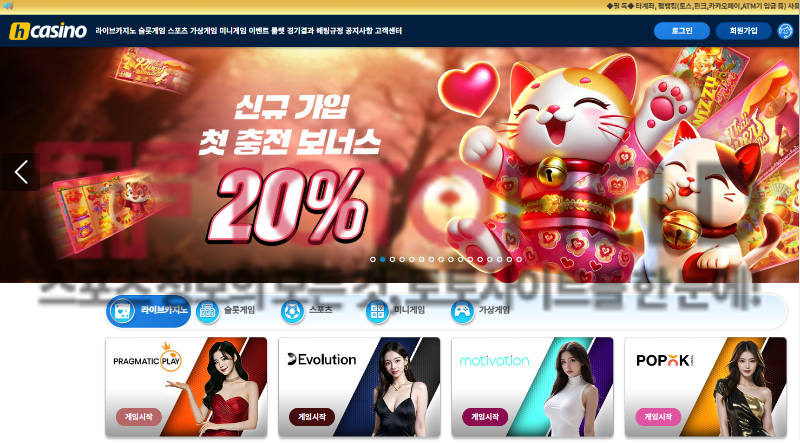 토토필드는 새로 개설된 에이치카지노 (gw586.com) 사이트에 대해 확인해보았습니다