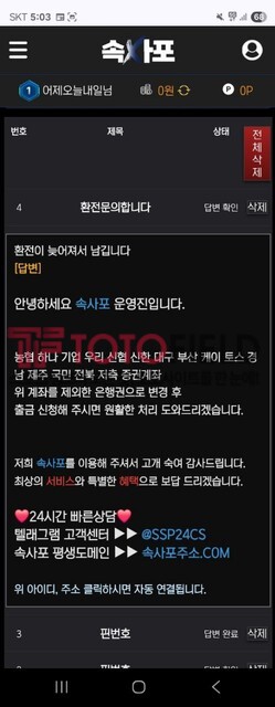 위 사건의 해당 업체는 문자 홍보를 해서 회원님들을 모집을 한 뒤에, 환전 신청을 하는 회원님들 상대로 아무런 이유 없이 연락을 무시하며 환전을 해주지 않고 회원님을 기만하는 파렴치한 악질 먹튀 사이트입니다. 위 사건 피해 회원님은 억울한 마음에 고객센터에 연락을 보냈지만 차단을 당해 아무런 항의도 하지 못하고 결국 억울하게 먹튀를 당하기만 하였습니다. 이러한 먹튀 피해를 당하지 않기 위해서는 사이트 가입을 하실 때 먹튀 검증 커뮤니티 사이트를 통해서 이용할 사이트가 먹튀 이력이 있는지 확인을 해주시고 검증이 확인된 사이트를 찾아서 안전하게 사이트 이용을 해주셔서 더 이상 먹튀 피해를 당하는 회원님들이 발생하지 않도록 주의해 주시기 바랍니다.